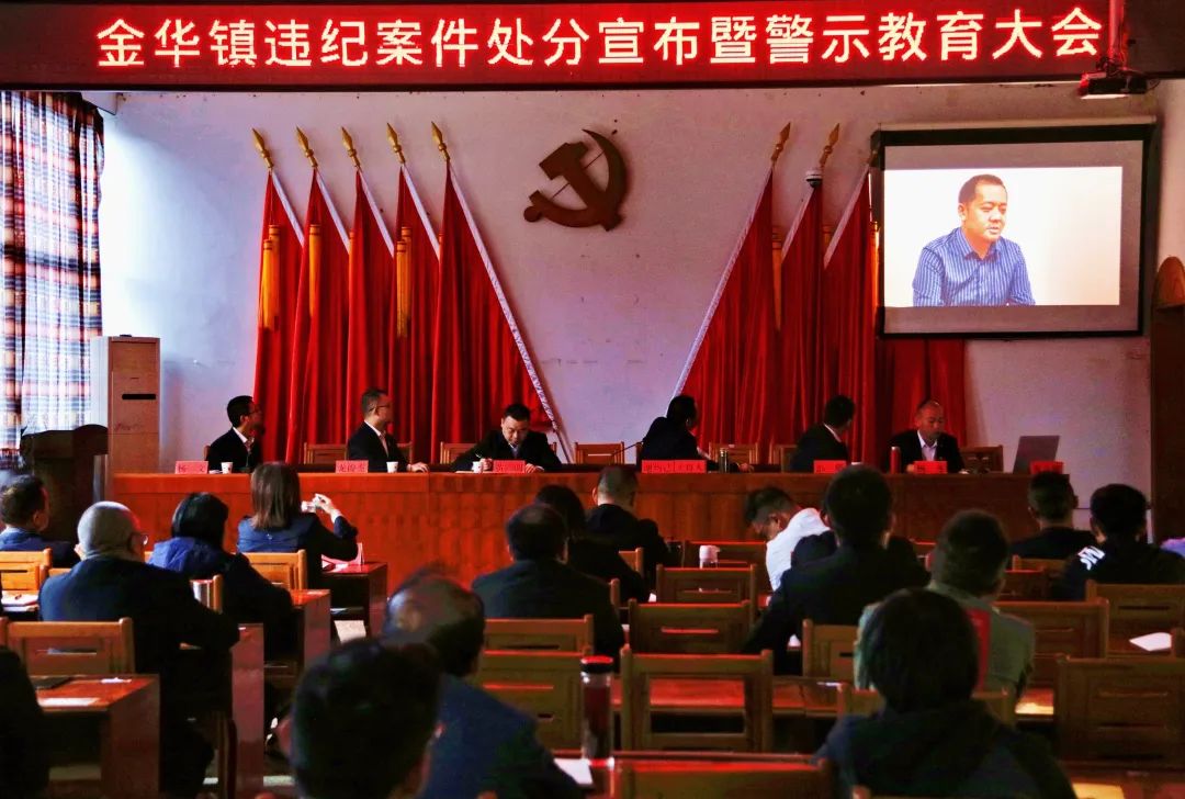 警示教育会现场,金华镇8名领导班子成员和8名干部代表依次上台,对照宋某违纪案谈认识。