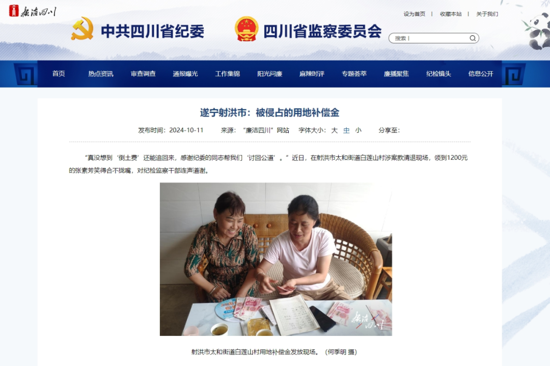 “真没想到‘倒土费’还能追回来,感谢纪委的同志帮我们‘讨回公道’。”近日,在射洪市太和街道白莲山村涉案款清退现场,领到1200元的张素芳笑得合不拢嘴,对纪检监察干部连声道谢。