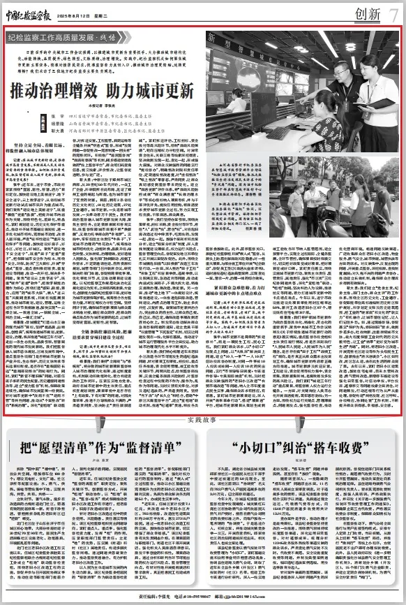 日前召开的中央城市工作会议强调,以推进城市更新为重要抓手,大力推动城市结构优化、动能转换、品质提升、绿色转型、文脉赓续、治理增效。实践中,纪检监察机关如何聚焦城市更新主要任务,精准对接居民需求,找准监督着力点切入口,推动城市治理更精细、运转更顺畅?我们采访了三位地方纪委监委主要负责同志。