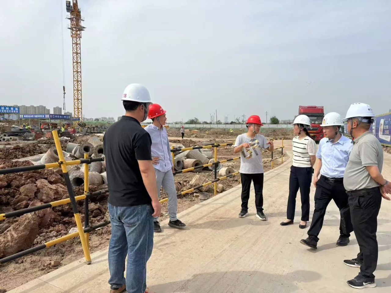 ▲4月19日,市纪委监委机关有关同志到市河东新区督导市失能老年人照护中心项目建设情况。