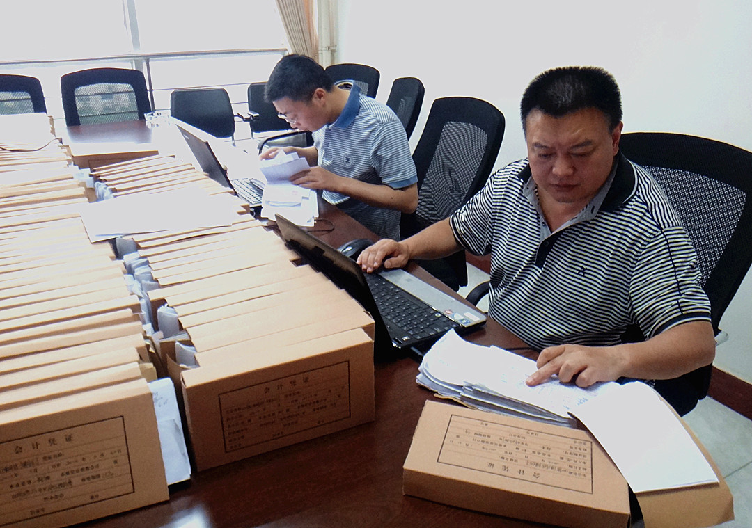 图为工作组成员在检查账目