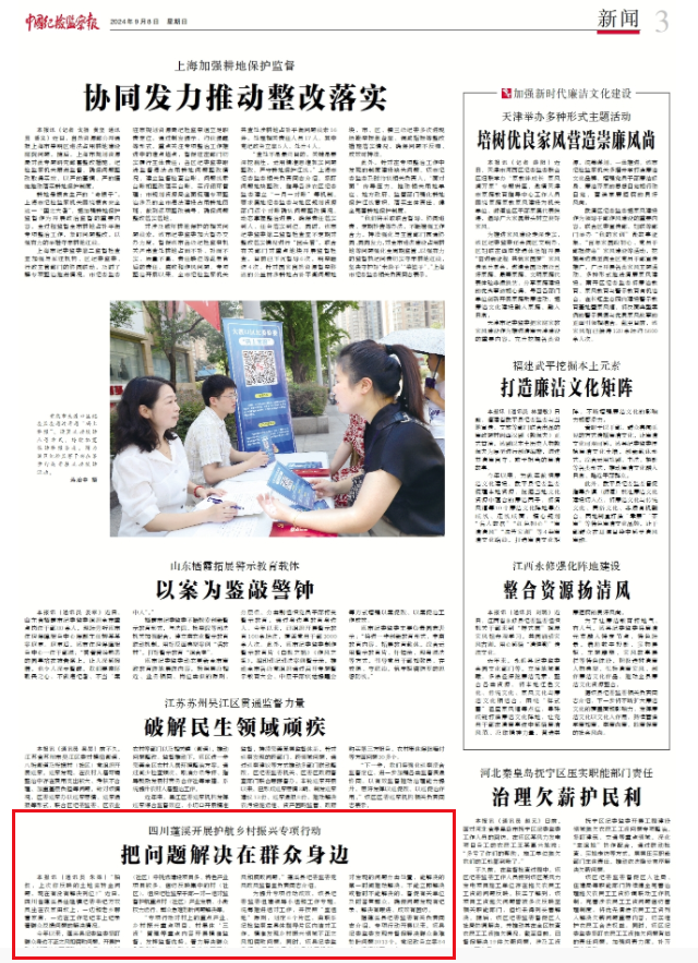 “专项行动对村上的重点产业、乡村振兴重点项目、村集体‘三资’管理等重点内容开展精准监督,发挥监督优势,着力解决群众急难愁盼,纠治群众身边的不正之风和腐败问题。”蓬溪县纪委监委党风政风监督室负责同志介绍。