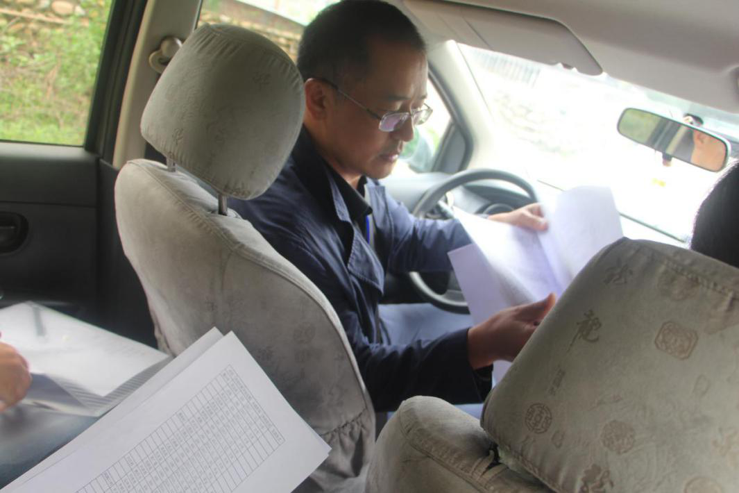 【9:00】县委巡察一组出发了。“在路上,我们再核对一下今天巡察工程项目上的问题,比对一下数据。”在巡察途中,组长蒋海涛不忘再次提醒组员,并现场拿出视察项目登记表,与组员讨论。在核定无问题后,才继续赶往现场。