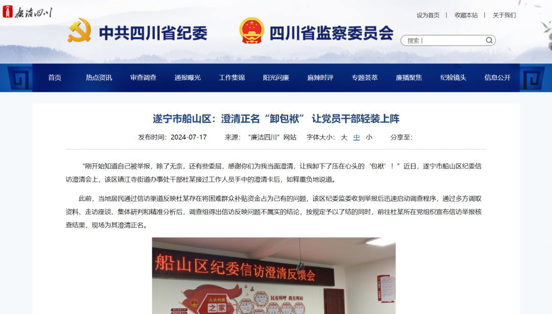 “廉洁四川”网站刊文