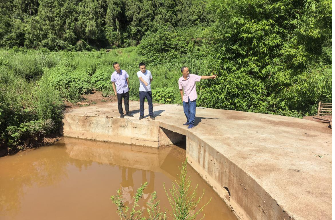 宝梵镇纪检干部在道德村3组新建拦河堰处开展回访