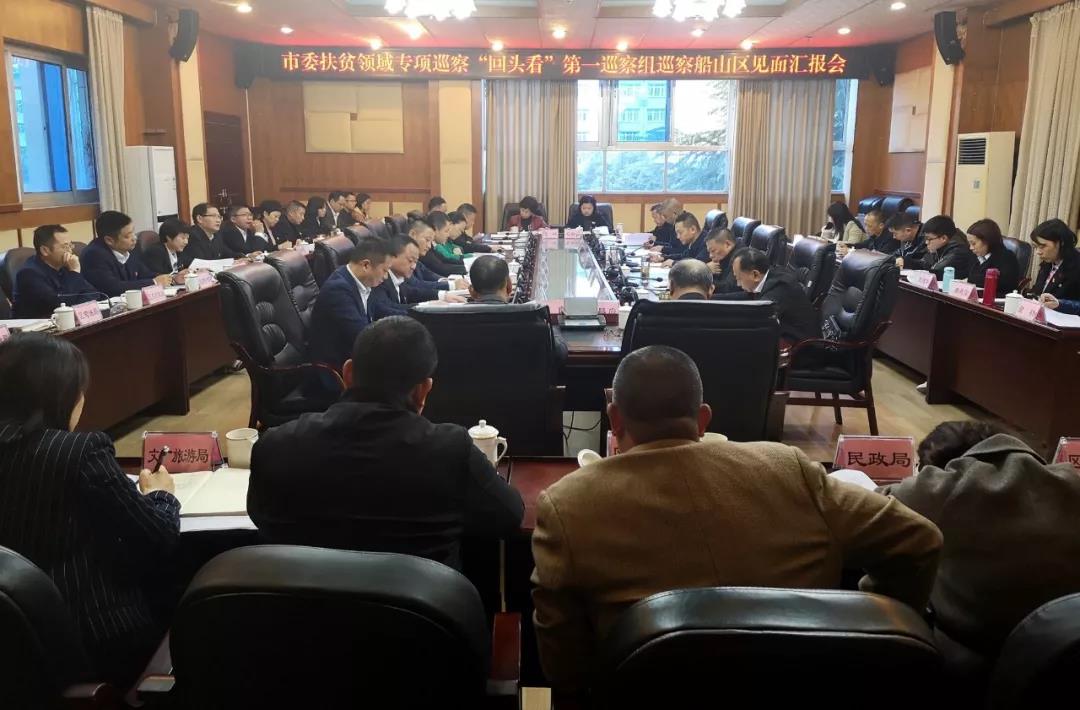 根据市委关于巡察工作的统一部署,11月12日下午,市委扶贫领域专项巡察“回头看”第一巡察组巡察船山区见面汇报会召开。第一巡察组组长蒋佰华出席会议并通报了本次巡察“回头看”的具体任务、工作安排和相关要求。船山区委副书记、区长韩麟主持会议、汇报船山区脱贫攻坚问题整改情况并作表态发言。